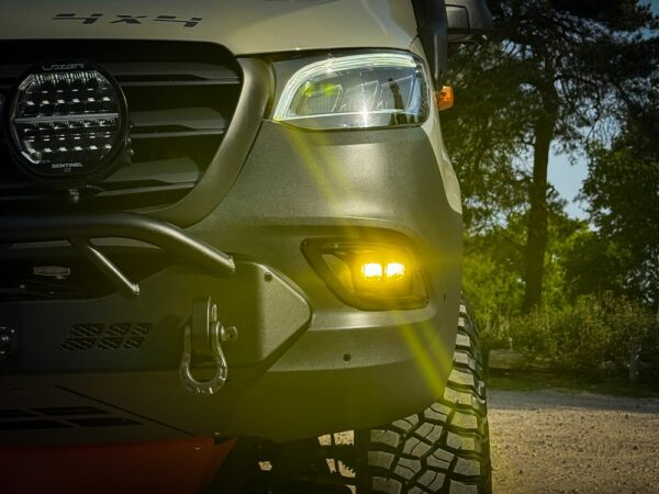 Mode de faisceau bas/plongé optimisé pour les conditions de neige/brouillard/poussière, ou pour éviter l’éblouissement des panneaux routiers lors des étapes sur route.