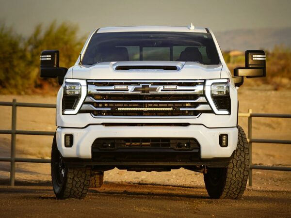 Le kit d’intégration de calandre pour Chevrolet Silverado 2500/3500 High Country (2024+) comprend une barre lumineuse LED haute performance Linear-24 Elite, un kit de câblage et des supports de précision qui s’intègrent parfaitement à la calandre centrale standard du véhicule. Pour une durabilité et un renforcement accrus, le kit comprend des vis autotaraudeuses (en plastique) pour une fixation optimale.