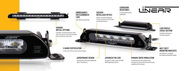Disponible avec: Projecteur LED Linear-18 (Standard ou Elite) et Glide (Standard/Elite – avec ou sans feux de position)