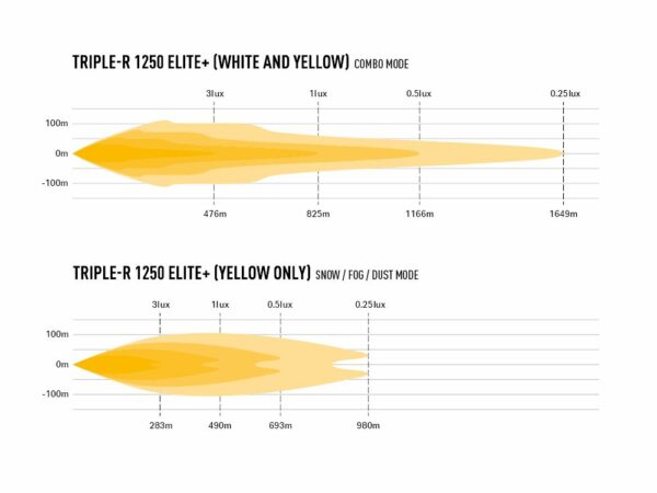 | † Le flux de champ de vision (FOV) du conducteur mesure les lumens effectifs en tenant compte de la quantité de lumière dans le « champ de vision » d’un conducteur défini comme étant une zone de +/- 45o de gauche à droite, et +/- 10o de bas en haut. | ||