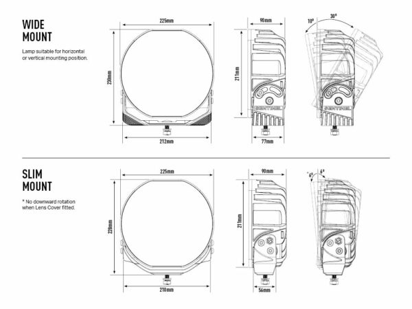 La conception compacte de la variante noire de la lampe Sentinel est obtenue grâce à l’adoption de cartes de circuits imprimés noires et d’une lunette noire avec des détails de conception hexagonale complexes pour une apparence unique et contemporaine. L’attrait esthétique de la lampe est renforcé par le support de montage « mince » en aluminium moulé sous pression, avec le timbre Sentinel, qui, comme les lampes elles-mêmes, bénéficie d’un prétraitement de qualité automobile avant d’être enduit de poudre noir satiné. Le résultat est une finition haut de gamme sur le produit qui est entièrement protégé contre la détérioration esthétique ou la corrosion. Un support de montage « large » alternatif, ainsi qu’une gamme de : couvercles de lentille, kit de barre de maintien et fixations antivol, sont disponibles en tant qu’accessoires en option.