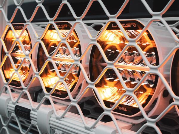Le design furtif de la lampe Sentinel est obtenu grâce à l’utilisation de circuits imprimés noirs et d’une bordure noire avec des détails de conception complexes, offrant un style unique et contemporain. L’attrait esthétique de la lampe est renforcé par un support de montage en aluminium moulé sous pression, avec l’estampillage Sentinel, qui, comme les lampes elles-mêmes, bénéficie d’un prétraitement de qualité automobile avant d’être revêtu d’une finition noire satinée par poudrage. Le résultat est une finition haut de gamme qui protège totalement le produit contre toute détérioration esthétique ou corrosion. Une gamme d’accessoires optionnels est disponible, notamment des caches de lentille, un kit de barre de renfort et des fixations antivol.