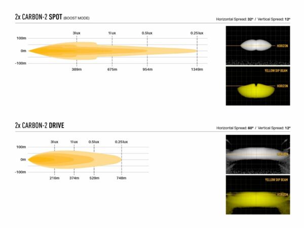 | 2x Carbon-2 DRIVE | 2x Carbon-2 SPOT (BOOST MODE) | |
