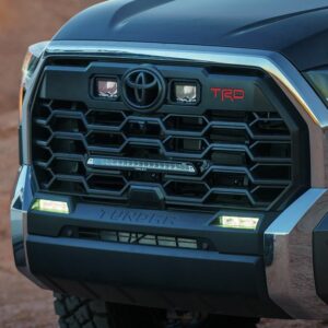 L’ensemble d’intégration de calandre pour Toyota Tundra TRD PRo (2022+) comprend, au choix, une barre lumineuse LED haute performance Glide (Standard/Elite – avec ou sans feu de position) ou Linear-18 (Standard, Elite, ou Elite), ainsi qu’un kit de câblage et des supports de précision s’intégrant parfaitement à la calandre centrale standard du véhicule. Pour une durabilité et un renforcement accrus, l’ensemble comprend des vis autotaraudeuses (en plastique) pour une fixation optimale.